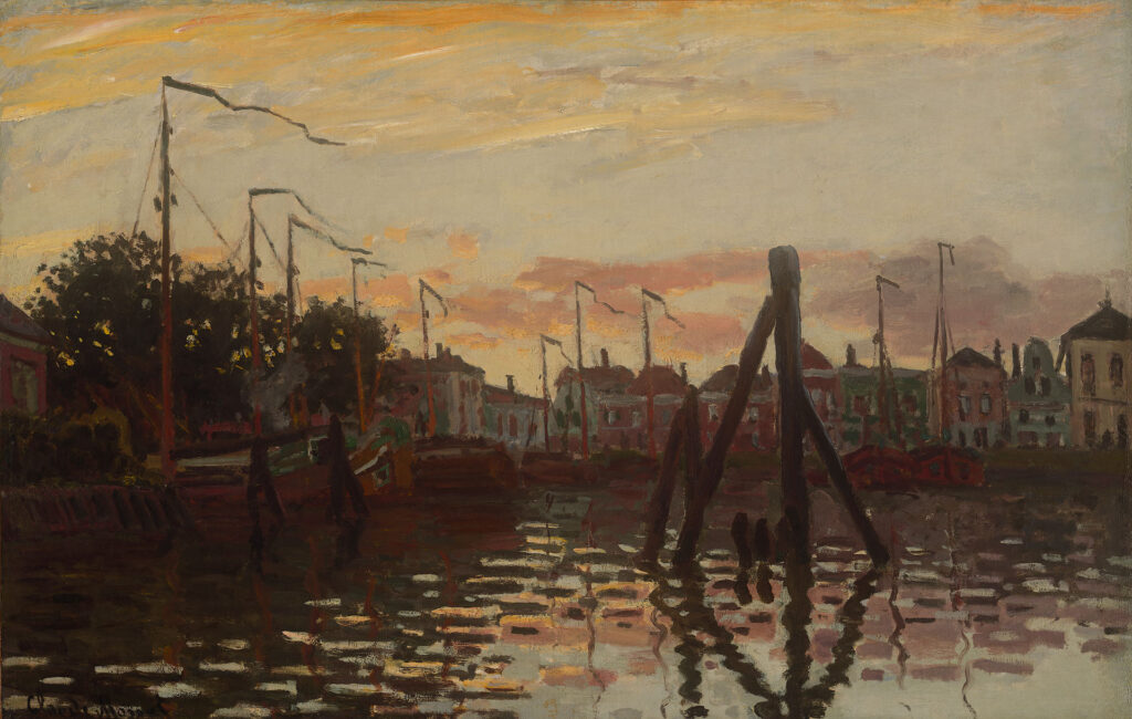 Zwei Gemälde Monets aus der Sammlung Hasso Plattner zeigen das Hafenbecken von Zaandam. Der Ort liegt unweit von Amsterdam, direkt am Nordseekanal. Auf der gegenüberliegenden Seite des Wasserwegs befinden sich die großen Anlagen des Amsterdamer Westhafens. Monet, der in Le Havre mit seinem großen Überseehafen aufgewachsen war, richtet hier den Blick auf den beschaulichen kleinen Ankerplatz Zaandams.