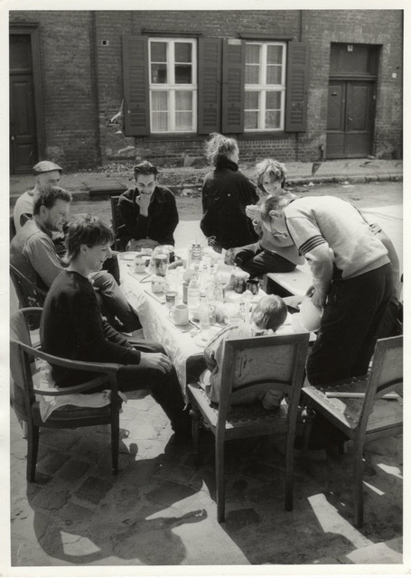 Wird mit Zeitzeugen:innen gesprochen, die in den 1980er Jahren im Holländischen Viertel wohnten, wird immer wieder von der Leere und dem Stillstand gesprochen, die die Gegend prägten. Junge wohnungssuchende Menschen zogen in einige der baupolizeilich gesperrten Wohnungen ein und wohnten dort „schwarz“, das heißt ohne Mietvertrag. Sie richteten zum Teil ein Fotolabor, eine Siebdruckwerkstatt oder ein Tonstudio ein. Manche der Bewohner:innen zeichneten, malten, fotografierten zusammen und machten gemeinsam Musik und organisierten Konzerte und Lesungen. Die entstandenen Arbeiten stellten sie in ihren Wohnungen aus und zeigten sie einem kleinen Kreis von Interessierten. Auch Künstlerbücher in kleinsten Auflagen entstanden. Höhepunkt der Aktivitäten war 1987 ein Gartenfest in der Mittelstraße 30 und die „Schwarz-Weiß-Fotoausstellung“ in der Mittelstraße 18. Für diese Menschen stellte das Viertel in den 1980er Jahren einen unabhängigen Raum dar.