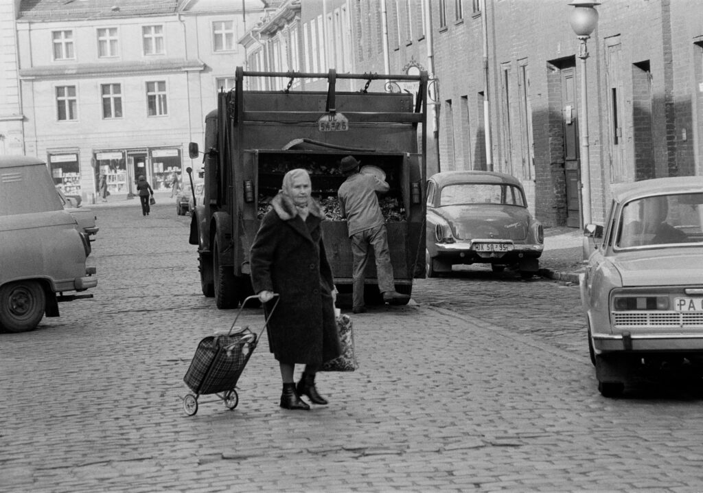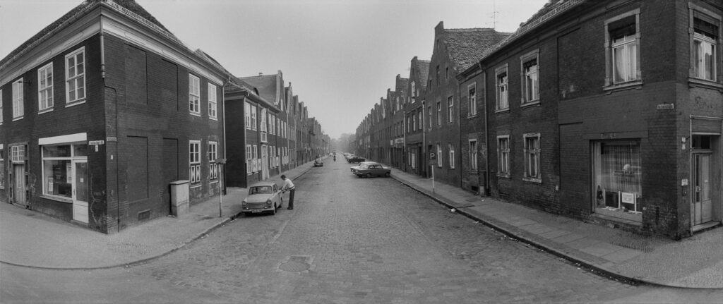 Zwar hatten die Potsdamer Stadtverordneten im Jahr 1975 entschieden, das Holländische Viertel als Ganzes zu erhalten und zu sanieren – ab September 1979 steht es dann als Stadtensemble unter Denkmalschutz –, doch erst einmal passiert nicht viel. Als der junge Student aus Leipzig 1977/1978 das Quartier in den Fokus nimmt, sind viele Wohnungen nicht mehr belebt, die Straßen oft verwaist: Das Viertel ist teilweise bereits leergezogen. Es präsentiert sich ihm als eine Gegend, über der das Damoklesschwert des Abrisses noch zu schweben scheint. Minutiös und mit viel Empathie für die Dagebliebenen und die noch bestehende Bausubstanz porträtiert Thonfeld den Alltag, der trotz Mangels und kaputter Fassaden weitergehen muss. Er konzentriert sich auf den letzten Rest Leben und erkennt: Das Viertel „in seiner Landschaft kann nicht weglaufen. Es bleibt in jedem Moment der Geschichte Raum.“